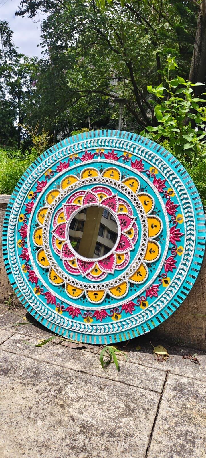 Add a beautiful touch to your artwork with this Lotus Shape Mirror. Perfect for Lippan art, Mandala art, and various craft projects, it brings a unique and elegant look to any design.