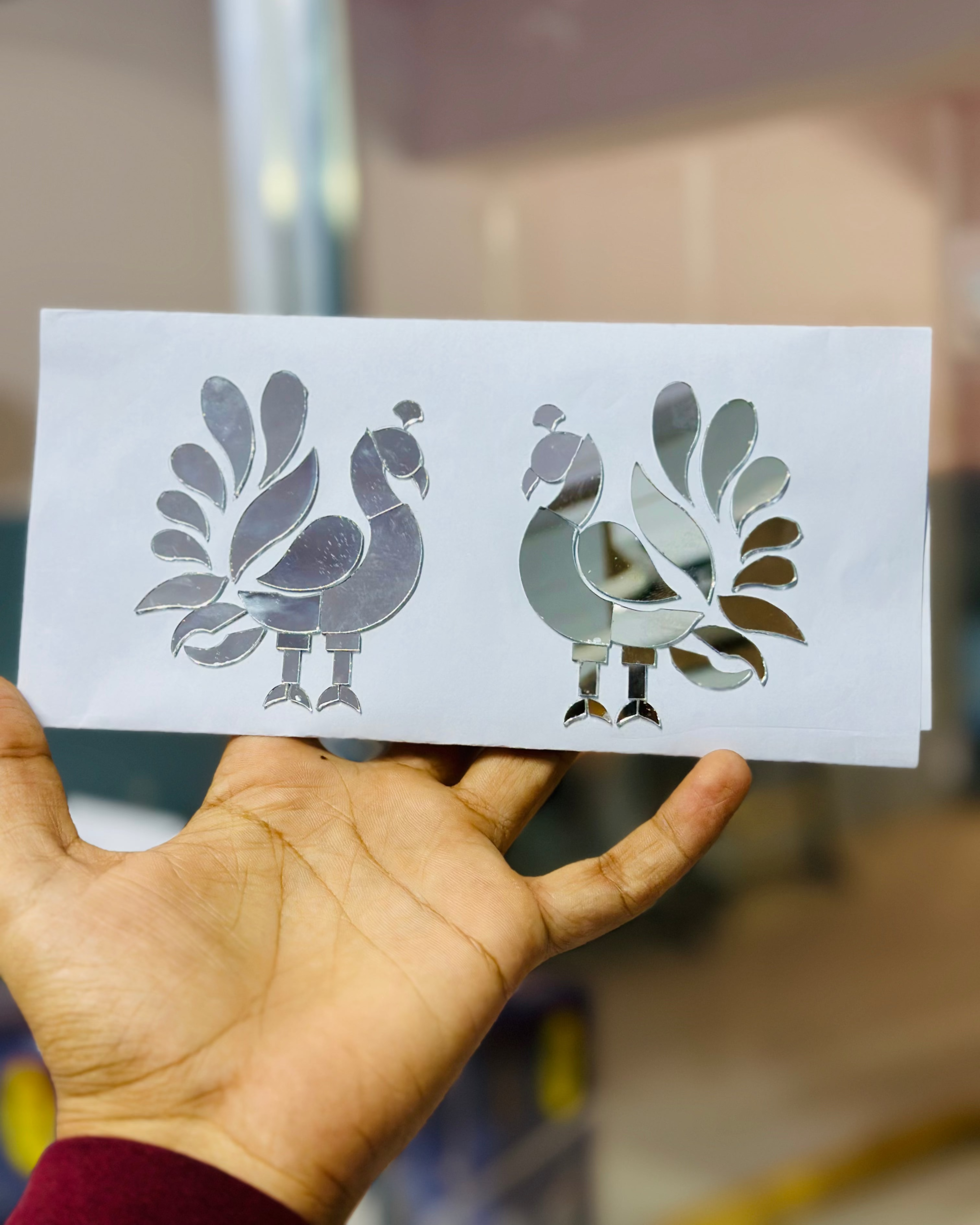 Enhance your artwork with this Peacock Shape Mirror, designed for Lippan art, Mandala art, and DIY crafts. Its elegant shape adds a decorative touch, making it perfect for creative projects and home décor.