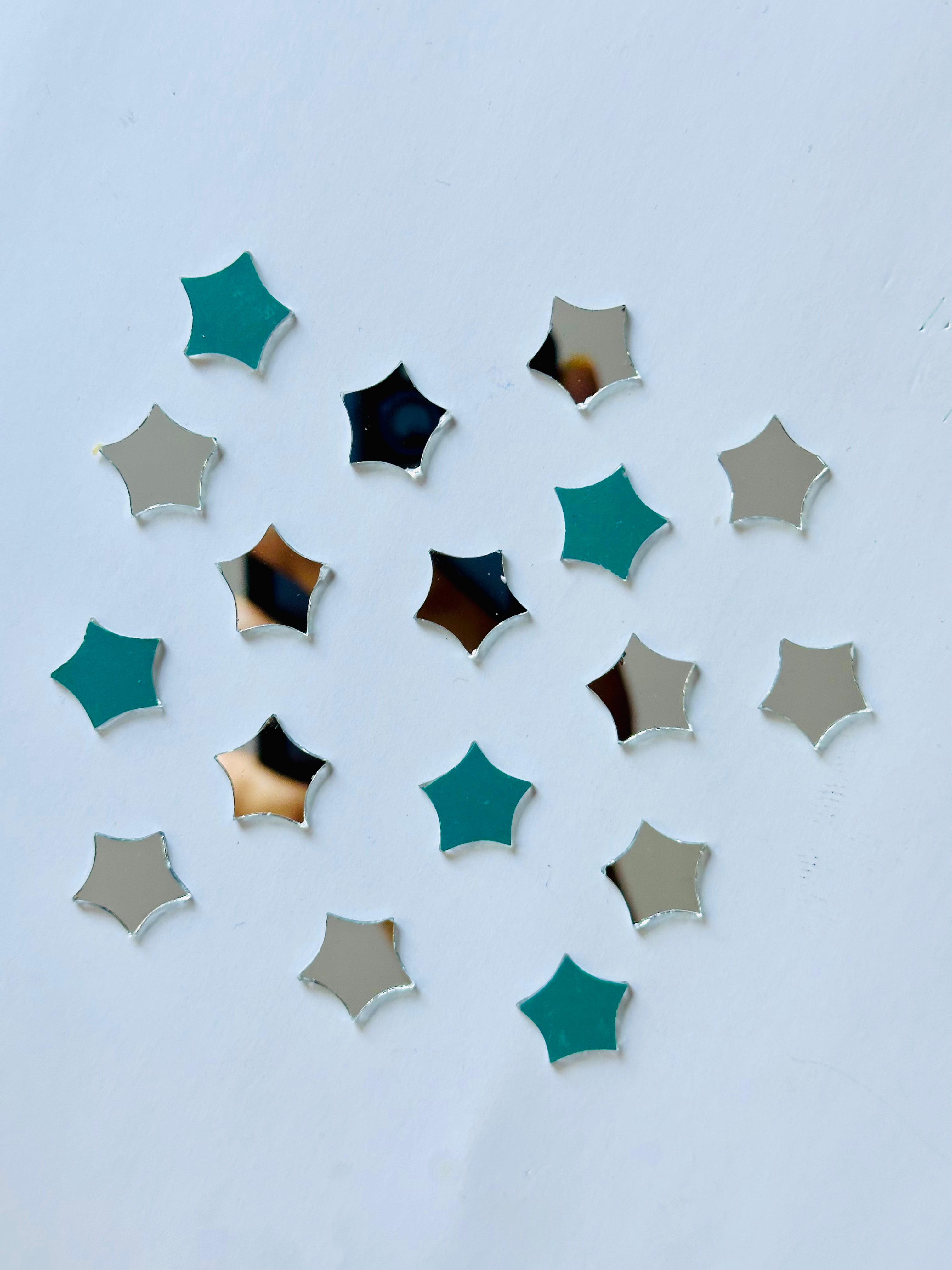 These premium triangle-shaped fancy mirrors are crafted with precision to enhance Lippan art, wall panels, rangoli, and ethnic décor projects. Each piece forms a perfect right-angle triangle with 14*14 mm and . Supplied in a 100 gm pack containing approximately pieces, these mirrors bring sparkle and elegance to every creative design.