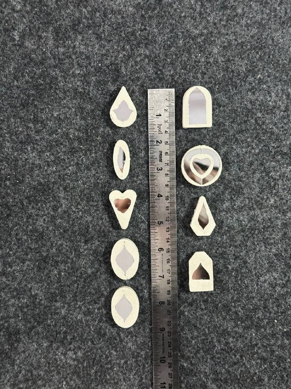 Premium DIY clay-mirror kit featuring 10 unique shapes, each with 5 pieces, designed for Lippan art, school projects, home décor, and creative crafting.