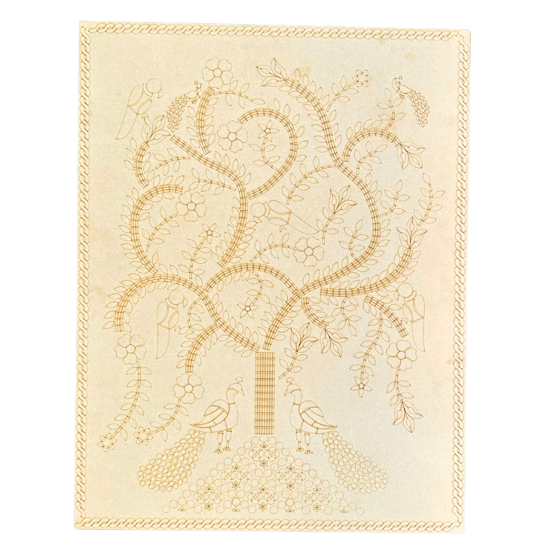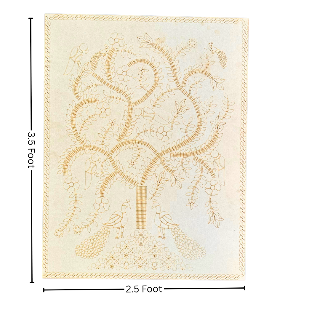 Enhance your traditional décor with this beautifully crafted premarked MDF board featuring an intricate tree, floral designs, and peacock detailing. Perfect for Lippan art, festive décor, and wall decoration.