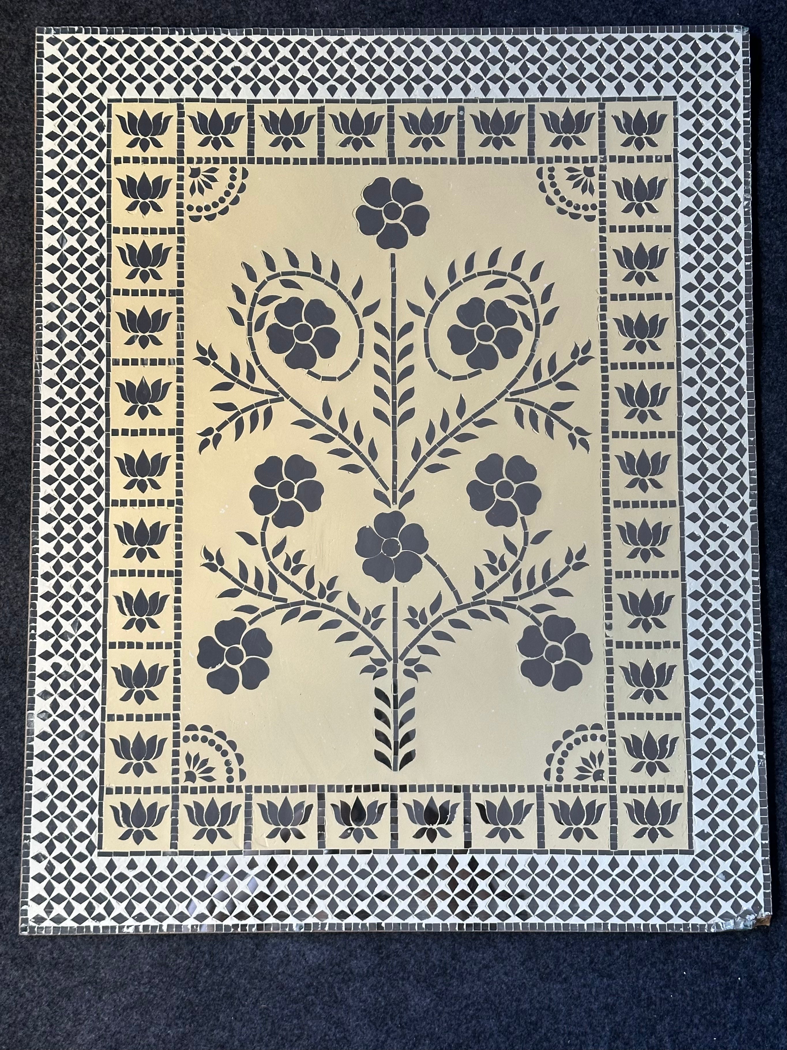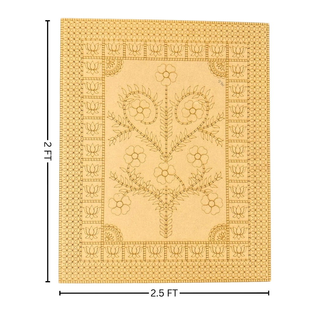 Intricate floral and border design premarked on high-quality MDF—perfect for Lippan art, clay work, and mirror decoration.