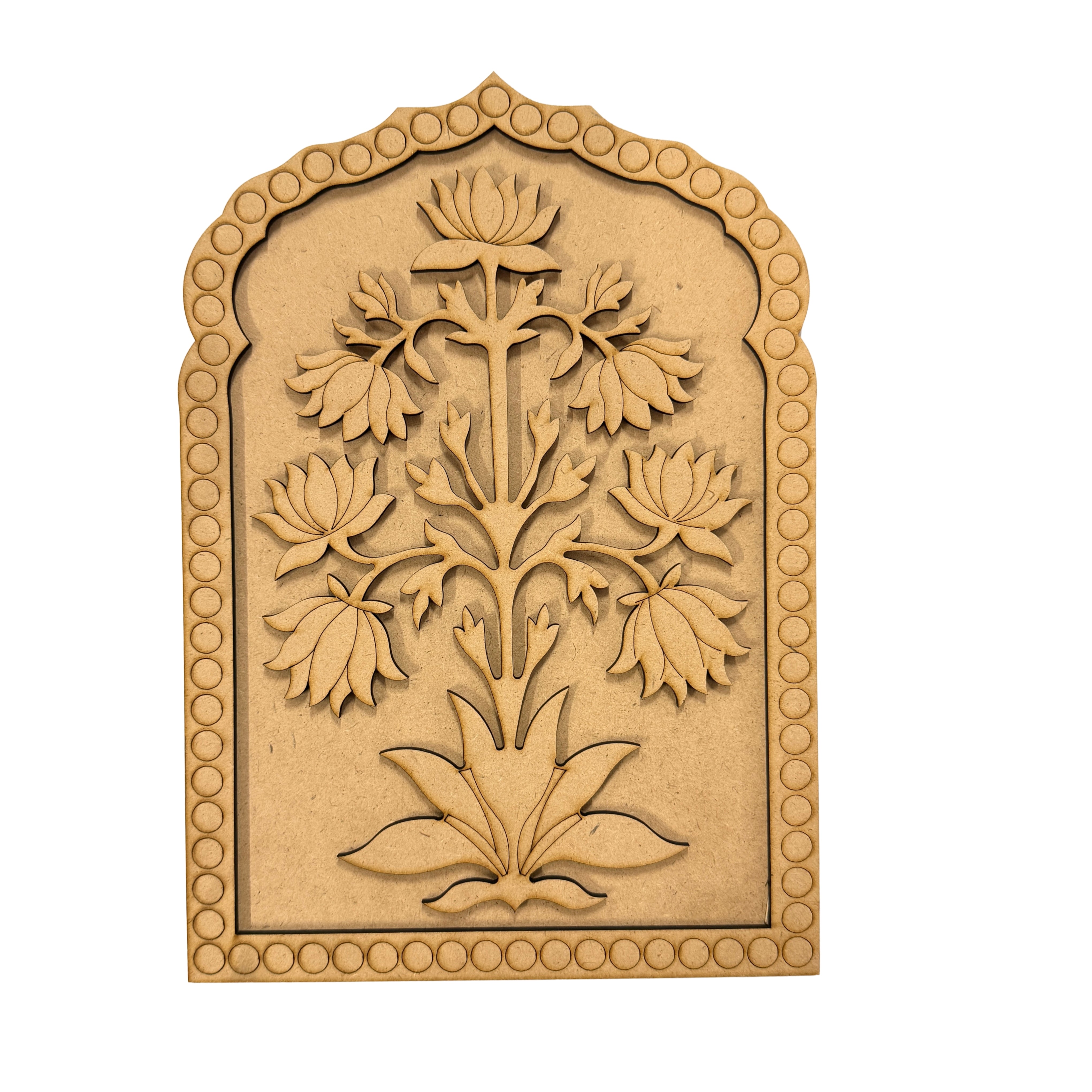 Premarked MDF lotus shape jharokha for easy Lippan art and mirror placement.