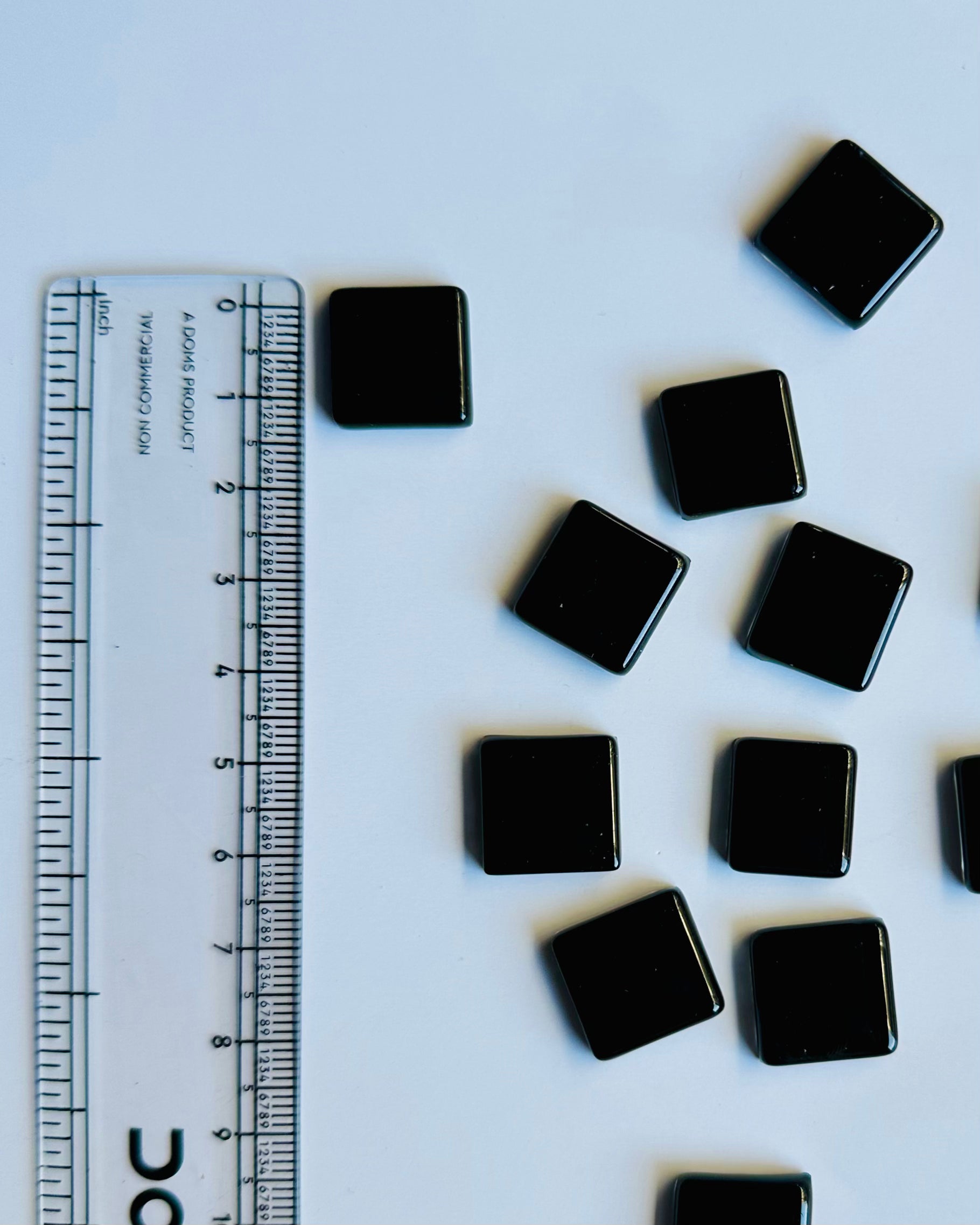 These glossy black mosaic tiles are perfect for adding bold definition and modern elegance to your creative DIY and Lippan art projects.